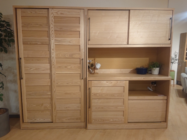 キッチンボード&ダイニングボード ラテリエ⁺-家具・インテリアショップYAOMOKU 商品カタログCATALOG > トップページ > 商品カタログ > キッチンボード&ダイニングボード ラテリエ⁺ CATALOG SPEC 商品名キッチンボード&ダイニングボード ラテリエ⁺ メーカーモリタインテリア サイズキッチンボード(向かって右):W140.2xD50xH200 ダイニングボード(向かって左):W120.2xD44.5xH200 カラーナチュラル/ブラウン 材質タモ材突板(一部無垢) DETAIL 引き戸タイプの大容量収納が魅力の、天然木キッチンボードシリーズです。 贅沢にあしらわれた無垢の質感が、無機質になりがちなキッチン周りを豊かに彩ります。アイテムバリエーションも豊富で、お部屋に合う1台をお選びいただけます。オープン部には、優れた調湿効果のあるモイスを標準装備しています。 画像はブラウン色 この商品のメーカーについて この商品に関連するアイテム オープンボード アンリキッチンボード スタダキッチンボード&ダイニングボード ラテリエ⁺ この商品におすすめのコーディネート ダイニングテーブル DT618 ホワイトオーク2.5Pソファ カラル180サイドボード カージェダイニングテーブル yamanami YT1 SHOP YAOMOKU Living Dining Shop 所在地大阪府八尾市光南町2-41 電話番号072-922-0001 営業時間平日 10:30~18:00/土日祝 10:30~19:00 水曜定休