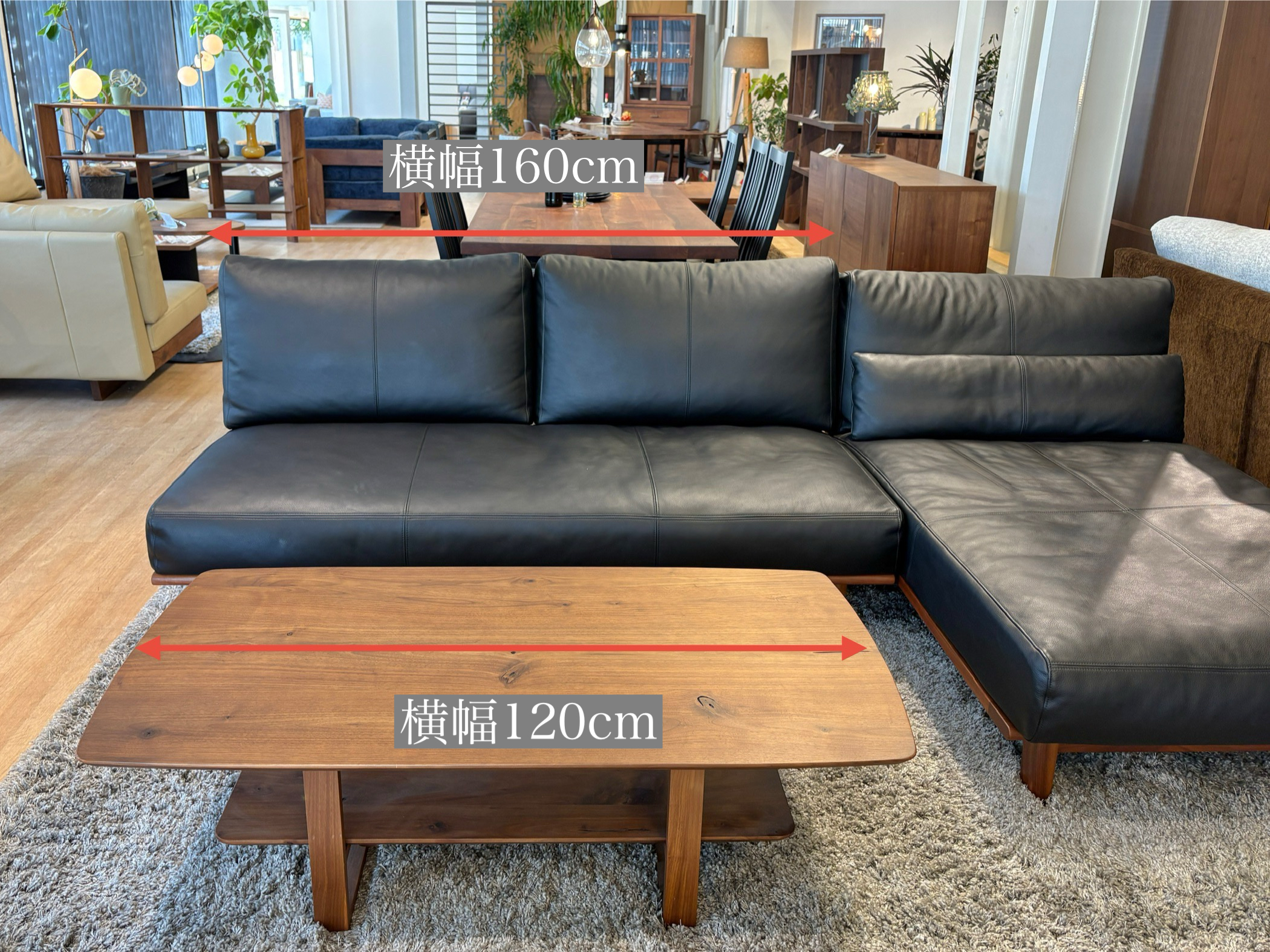 120cm前後のセンターテーブルだとバランスが良く見えます。