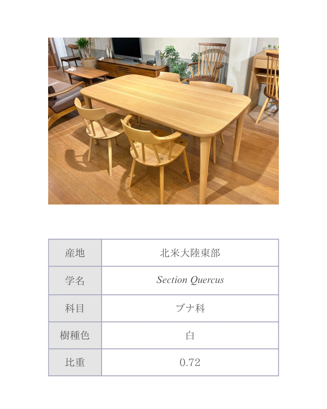 ▲展示で見れるホワイトオーク家具の一部ご紹介