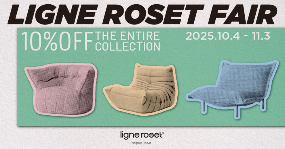 リーン・ロゼフェア2025 ligne roset fair 2025 10.4(土)-11.3(水)迄 「ロゼトーゴ」をはじめ、リーン・ロゼの全商品がいまだけ10%OFF! ヤオモクリビングダイングショップでは展示・お取り扱いしている「ロゼトーゴ」がフェアの対象となります。 お得に手に入れるチャンス!この機会に是非ご検討くださいませ。 【注意事項】 ・修理、ウレタン補充、クリーニングは対象外となります。