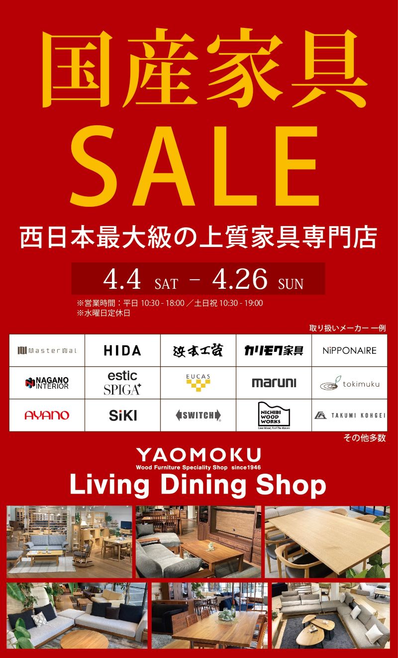 YAOMOKU 国産家具SALE 2026.4/4 sat.-4/26 sun.