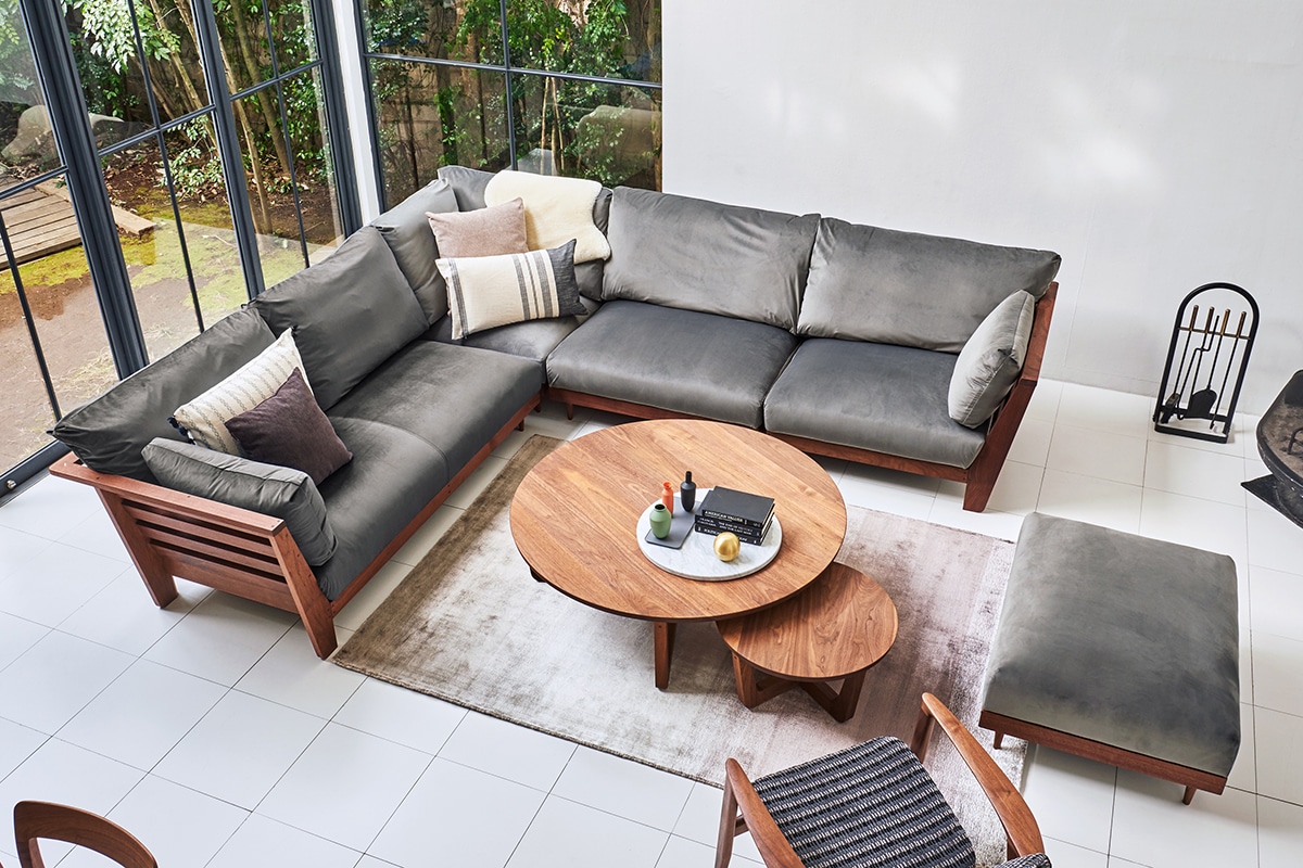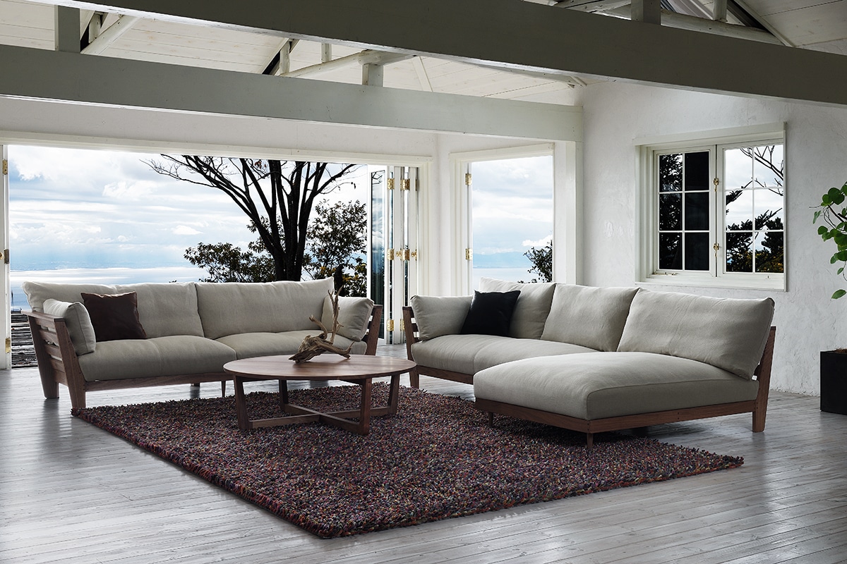 フェザーをたっぷり使ったボリュームのあるクッションと、肘から背にかけて座面を支える無垢のウッドフレームが特徴。ふんわりと盛り上がったクッションには程よい弾力と柔らかさがあり、体が深く包み込まれるような極上の座り心地の最上質のソファです。